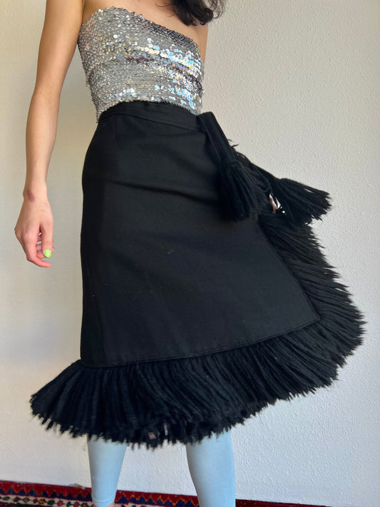 1960s Geoffrey Beene Bazaar Fringe Wool Wrap Skirt