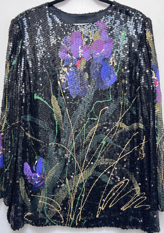 1980s Jeanette for St. Martin Hand painted Sequin Top