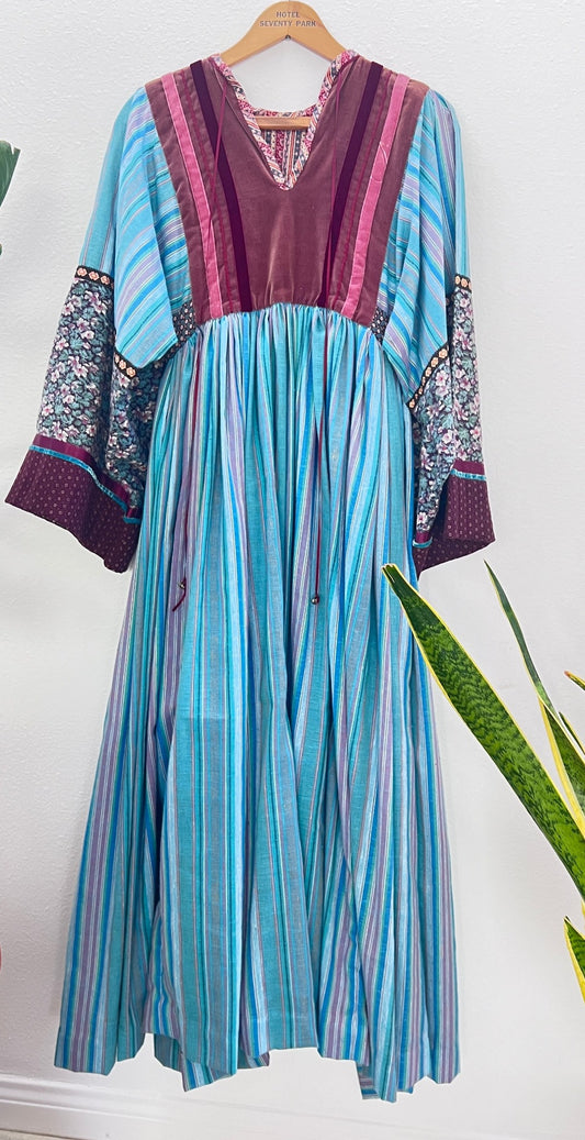 1970s Custom patchwork Bohemian Maxi Dress