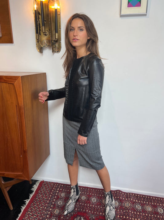 Fall 2000 Tom Ford for Gucci Herringbone + Leather Pencil Skirt
